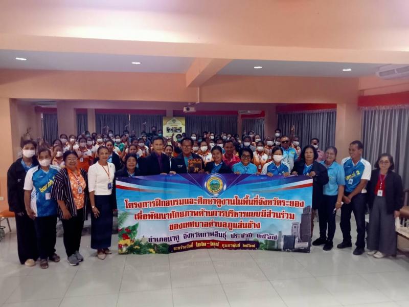รายละเอียด : วันที่ 22-24 เทศบาลตำบลภูแล่นช้าง โดย นายเฉลิมศักดิ์ ชมภูเลิศ นายกเทศมนตรีตำบลภูแล่นช้าง จัดโครงการฝึกอบรมและศึกษาดูงานเพื่อพัฒนาศักยภาพด้านการบริหารแบบมีส่วนร่วมของเทศบาลตำบลภูแล่นช้าง ประจำปีงบประมาณ 2567 โดยในวันแรกได้รับเกียรติจากปลัดอาวุโสอำเภอนาคู เป็นวิทยากรบรรยายให้ความรู้ก่อนออกเดินทางไปศึกษาดูงานจังหวัดระยอง โดยในครั้งนี้ได้รับความอนุเคราะห์จากเทศบาลนครระยอง เทศบาลตำบลสุนทรภู่ และศูนย์การเรียนรู้ของชุมชนบ้านจำรุง อำเภอแกลง จังหวัดระยอง